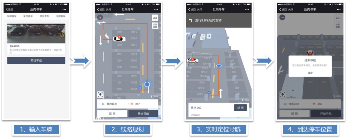 可視化反向?qū)ぼ?,支持按車牌?hào)、進(jìn)場(chǎng)時(shí)間段、無牌車、車位號(hào)快速尋車,節(jié)約車主尋車時(shí)間;iBeacon(藍(lán)牙)定位系統(tǒng),實(shí)現(xiàn)實(shí)時(shí)定位導(dǎo)航尋車,尋車體驗(yàn)更佳。