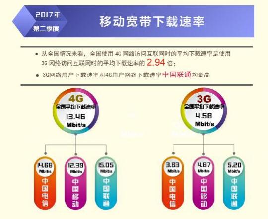 日前,寬帶發(fā)展聯(lián)盟發(fā)布了第 16 期《中國(guó)寬帶速率狀況報(bào)告》(2017 年第二季度)。報(bào)告顯示 2017 年第二季度我國(guó)固定寬帶網(wǎng)絡(luò)平均下載速率達(dá)到 14.11Mbit/s,比 2017 年第一季度提高了1.1Mbit/s,同比去年第一季度提升了 34.8%。自 2015 網(wǎng)絡(luò)“提速降費(fèi)”工作開展以來(lái),我國(guó)固定寬帶可用下載速率連續(xù) 10 個(gè)季度持續(xù)提升,總提升幅度達(dá)到 3.3 倍。同時(shí),我國(guó)移動(dòng)寬帶用戶使用 4G 網(wǎng)絡(luò)訪問互聯(lián)網(wǎng)時(shí)的平均下載速率達(dá)到 13.46Mbit/s,環(huán)比 2017 年第一季度也有 14.2%的提升。